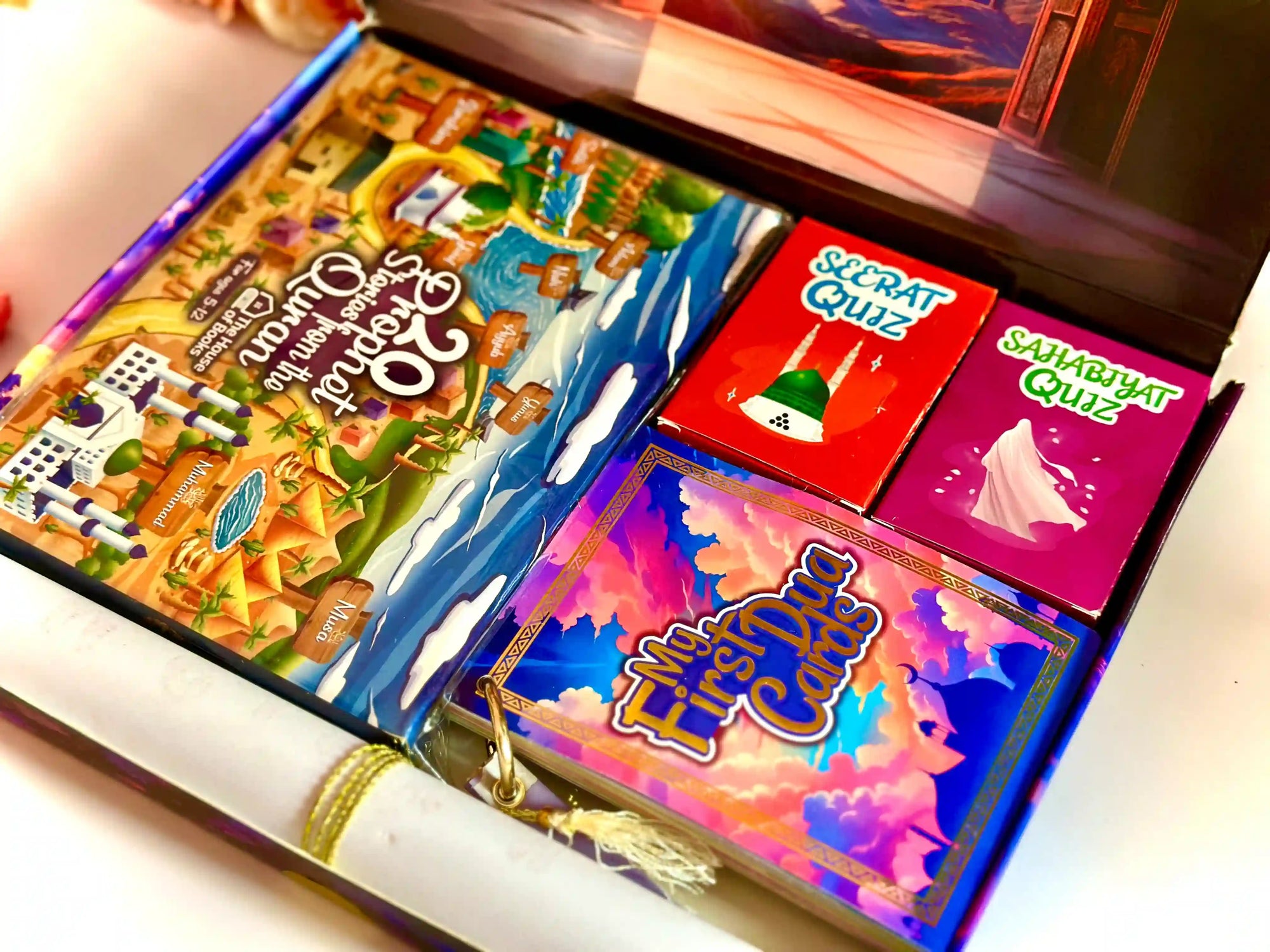 Make learning about Islam exciting with our beautifully illustrated Prophet stories, interactive Islamic quiz cards, the house of books dua jar, and fun tracing books for kids. Designed to nurture faith, knowledge, and creativity!