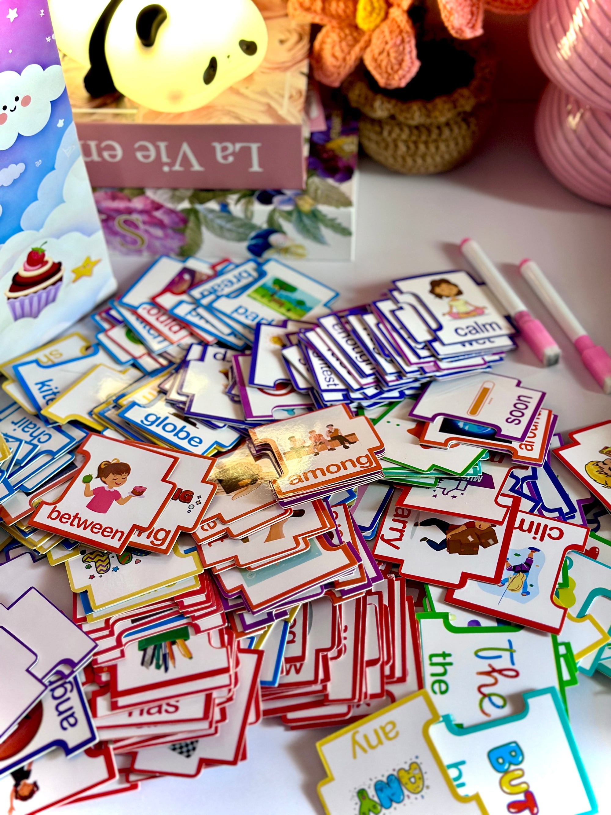 β’ 250 double-sided puzzle pieces - 500 total words