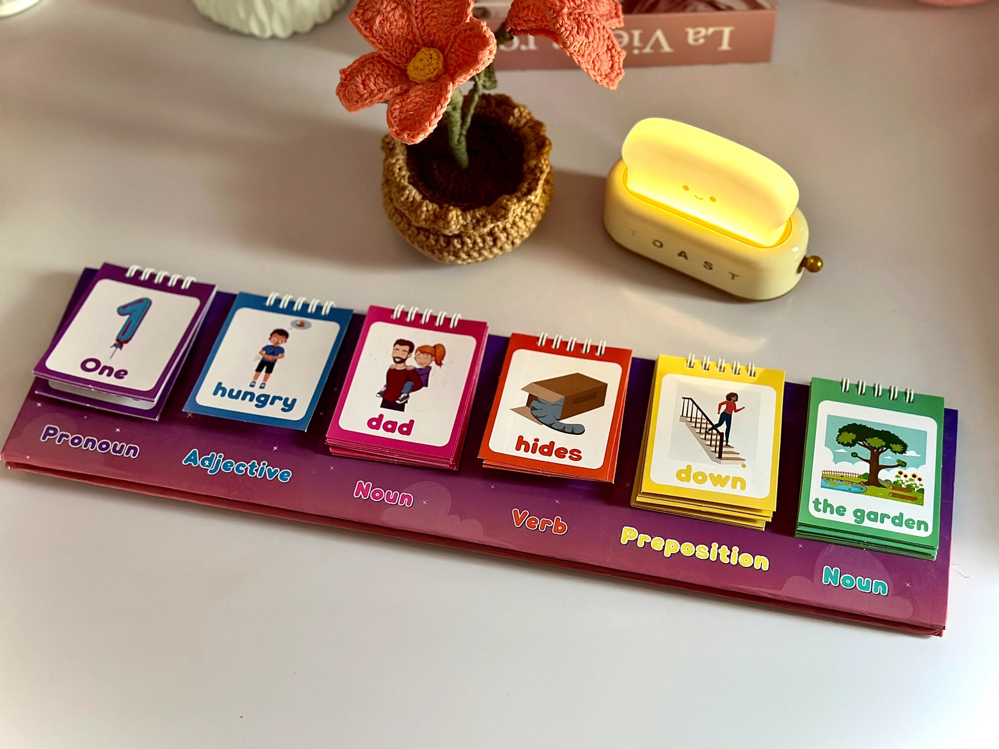 Designed to make grammar simple and engaging, this flip chart helps children understand and practice parts of speech by actively building sentences. By flipping, mixing, and matching cards, kids learn how words work together in a sentence, strengthening their grammar, vocabulary, and critical thinking skills through hands-on play.
